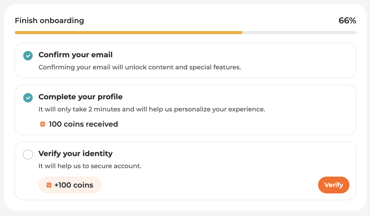 You can complete the identity verification from your profile (onboarding section) or during your first withdrawal. For this, you’ll just need to initiate the verification process and take a couple of pictures of your driver's license, ID card, passport, or resident permit and a real-time selfie.